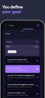- Training plans for Ironman, ultra and sprint races, marathons, half marathons or Olympic triathlons.