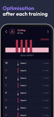 Make the most of your training budget and always train to the exact extent your body needs. The plan analyses your performance and automatically sets the amount and intensity of training. Furthermore, the intensity of completed workouts is automatically analysed and subsequent sessions are adjusted accordingly.