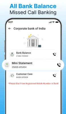 Note: App is not affiliated with any 3rd party. app just help to use bank's missed call facility