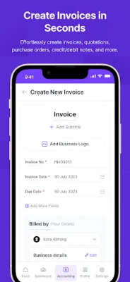 🌟Document Creation: Create Invoice, Quotation, Proforma Invoice, Sales Orders, Purchase Orders, Credit Notes, Debit Notes, Delivery Challans, Expenditures, and more using this invoicing app.