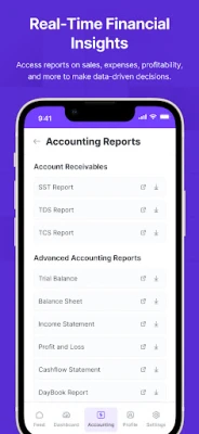 🌟Financial Reports: Generate Balance Sheet, Trial Balance, P&L, Income Statement, Daybook, & other financial reports.