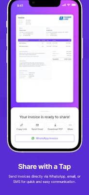 🌟Quick Sharing Options: Share invoice free over WhatsApp/Email. Download as PDF, Take a printout, or share via a link directly through invoice generator App.