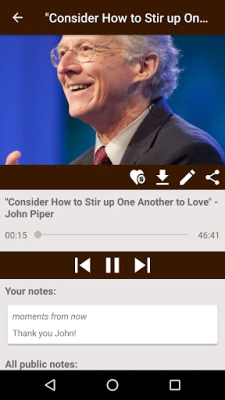 Share sermons easily to friends. Make notes directly within the app. Download sermons to your own device if that works better for you.