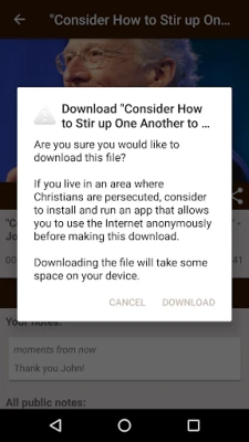 If you live in an area where Christians are persecuted, consider to install and run an app that allows you to use the Internet anonymously before installing the app and downloading audio files from John Piper Sermons.