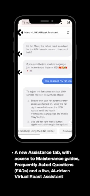 The Link App is the accompanying mobile application for the Link Sample Roaster by Nucleus Coffee Tools and Kaffelogic. Utilising this app, Link users can input a range of information about the coffee they wish to roast, and the app’s algorithmic profile selection will provide the most ideal recommendation for roast Profile Pack, Power Curve/Roast Profile, Suggested Development Range, Fan Action (fan speed), and the Expected First Crack for each coffee.
