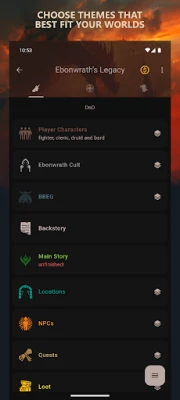 *THEMES: The fantasy theme is great for the most popular tabletop RPG systems like dnd 5e or pathfinder, but the app also has themes for other settings: cthulhu, sci-fi, cyberpunk, post-apocalyptic, steampunk and wuxia.