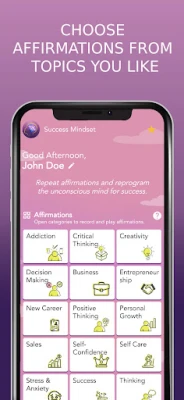 Success Mindset is the best motivation app designed to help you practice positive thinking, self-care and stay highly motivated with Inspirational quotes and positive affirmations. These daily affirmations and positive quotes are meant to help you affirm and manifest your dream life.
