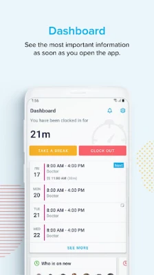 Clock in and out of breaks.